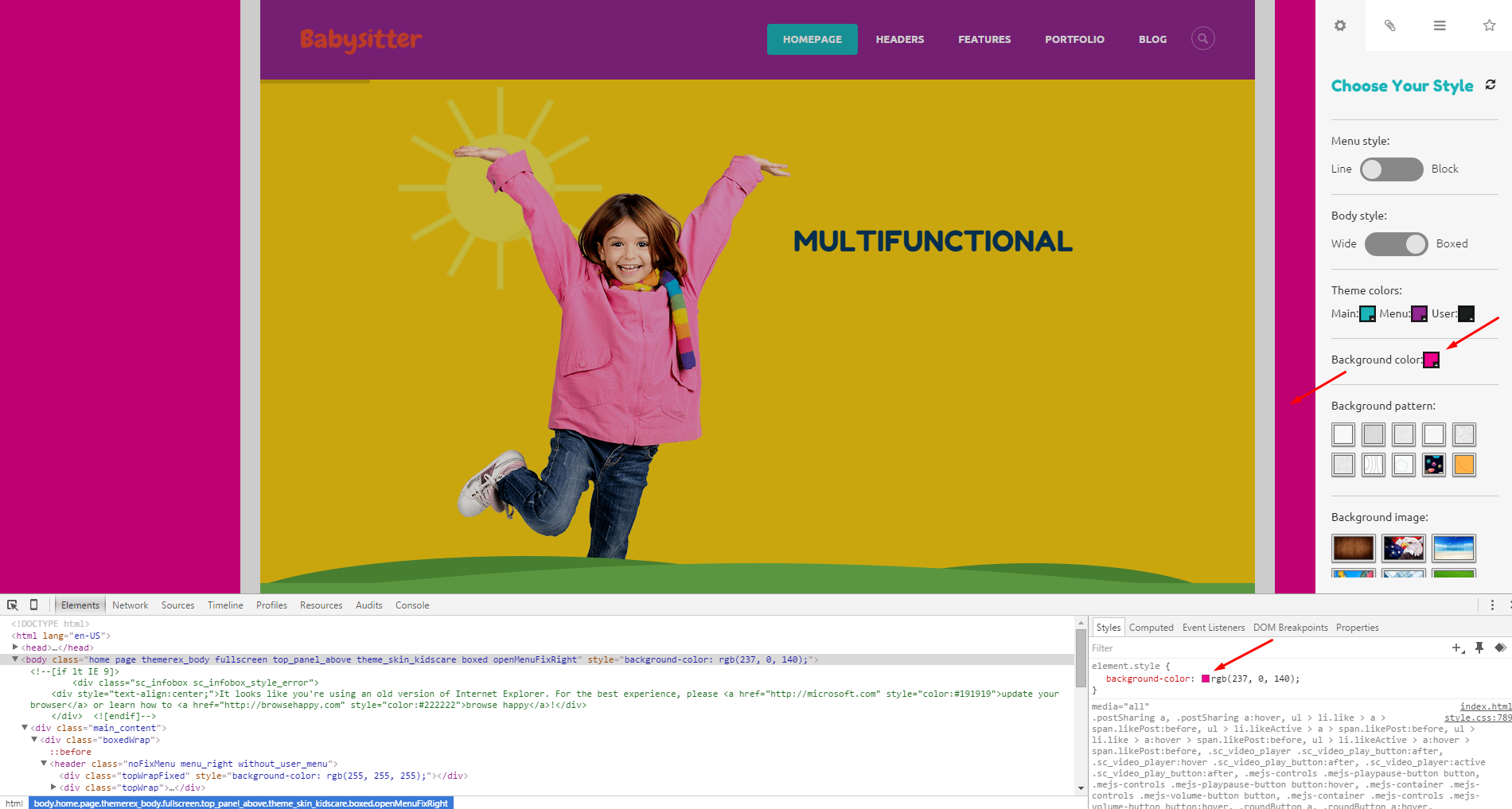 <body class="home page themerex_body fullscreen top_panel_above theme_skin_kidscare boxed bg_pattern_9 openMenuFixRight" style="background-color: rgb(237, 0, 140);">