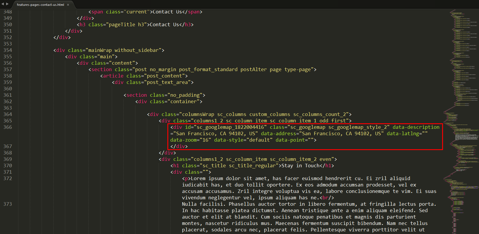 Address/coordinates should be specified in the root directory.../features-pages-contact-us.html file.