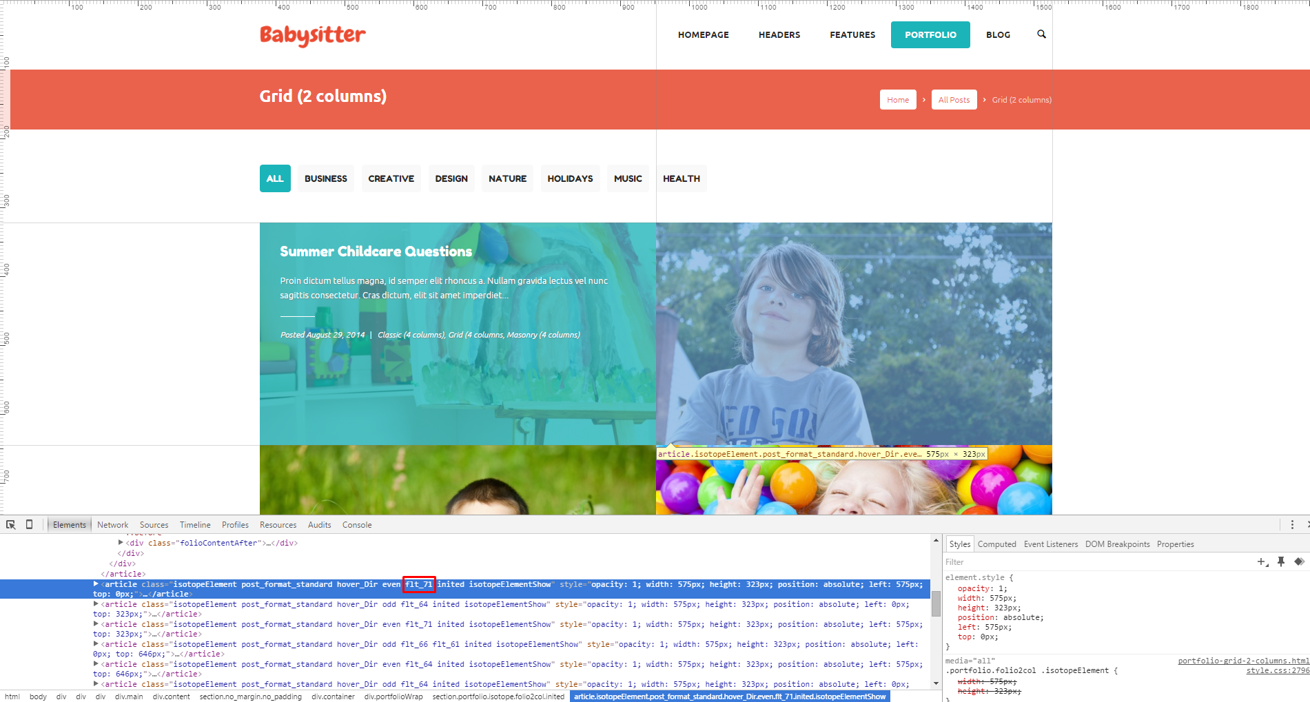 The snippet below belongs to the "Grid (2 Columns)" page which can be found in root directory.../portfolio-grid-2-columns.html file.